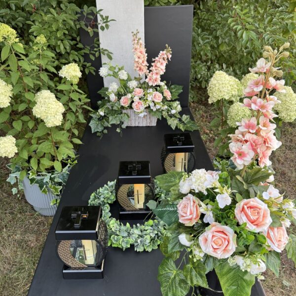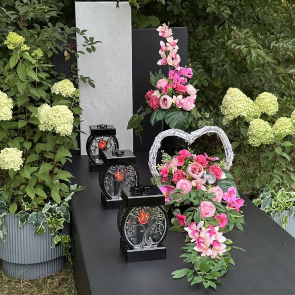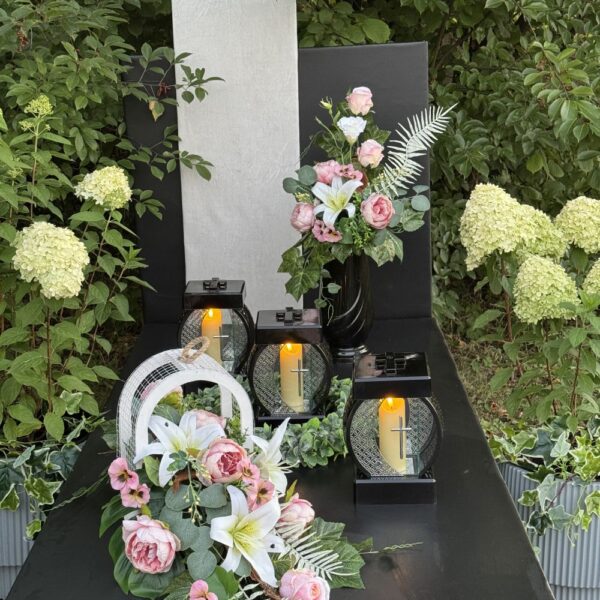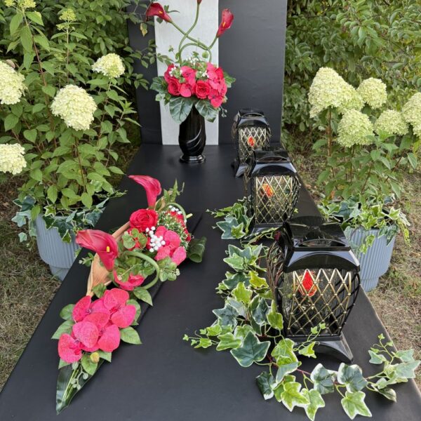 Nowoczesna Kompozycja z Bukietem do Wazonu – Zestaw Na Cmentarz Ze Zniczami -1013