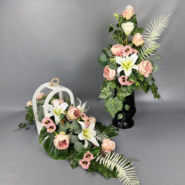 Nowoczesny Komplet Na Cmentarz Z Kwiatami Egzotycznymi – 0981 B