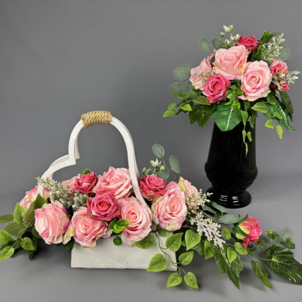 Komplet – Stroik w Koszyku Serce i Bukiet do Wazonu – 1020